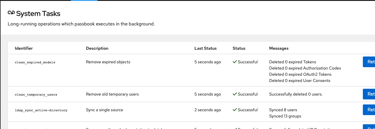 5. Click Finish to save the LDAP Source. An LDAP synchronization will begin in the background. Once completed, you can view the summary by navigating to Dashboards > System Tasks: